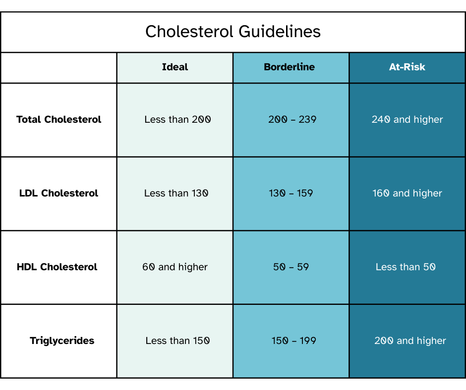 Keep in mind that these are general guidelines. A healthy cholesterol level for you may be different because of your family history, lifestyle and other risk factors for heart disease and stroke. Ask your doctor what’s right for you.