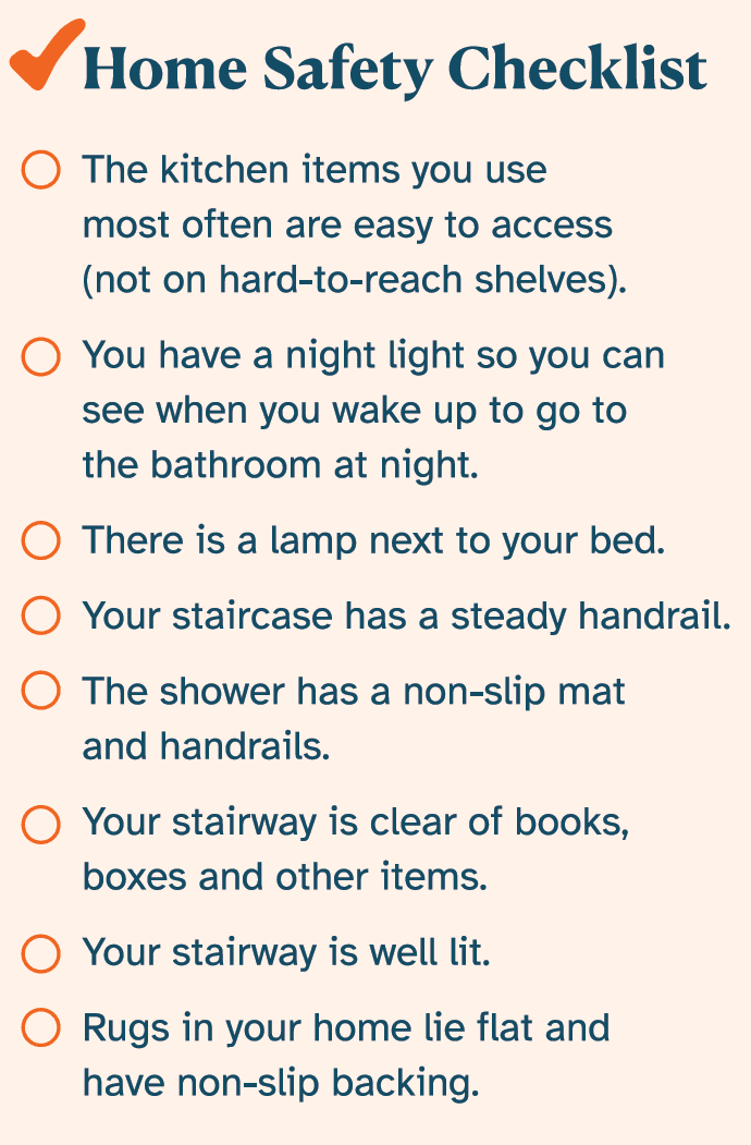 这份《家居安全清单》将帮助您降低在家中跌倒的风险: