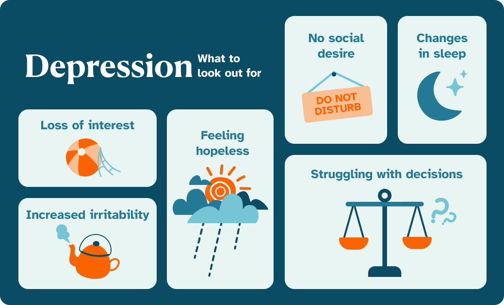 Sometimes depression (whether you are experiencing only one of these symptoms, all of them, or different ones) is mistaken as a normal part of aging, but it's not. It's important to talk to your primary care provider or family doctor if these symptoms persist.